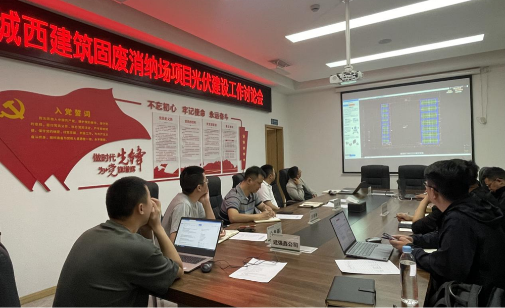 4月24日,公司召開綿陽城西建筑固廢消納場項(xiàng)目光伏建設(shè)工作討論會(huì)。(素材來源:業(yè)務(wù)部 陳星)