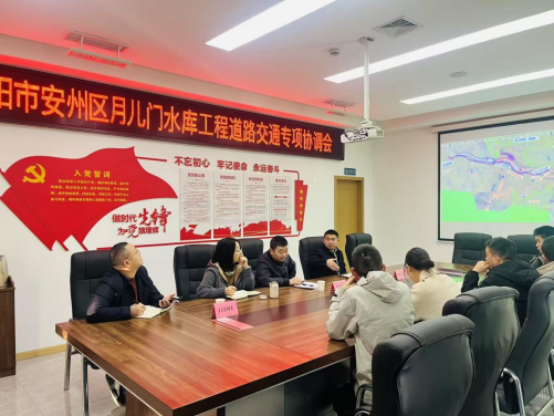 11月27日,集團(tuán)副總經(jīng)理馮文生組織召開安州區(qū)月兒門水庫工程道路交通專項(xiàng)協(xié)調(diào)會(huì)。(素材來源:項(xiàng)目安環(huán)中心 張瑞桃)