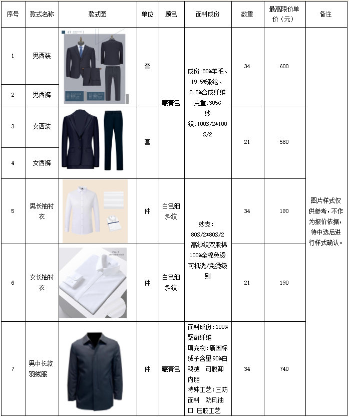 2.報價采用綜合單價模式,包含且不限于綿陽安州礦產(chǎn)資源集團有限公司選取職工定制工作服供應商一切費用。(注:報價模式包含包干總價模式、綜合單價模式、費率等模式,詢價單位根據(jù)項目具體情況填寫報價模式)